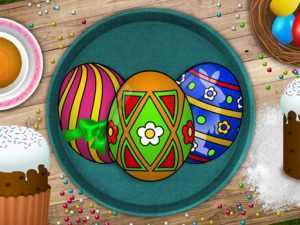 So Easter has come! Easter egg is a symbol of the spring holiday along with Easter cake and cottage cheese Easter. The egg symbolizes life, rebirth, and the tradition of painting eggs for Easter is rooted in antiquity. Legend has it that Mary Magdalene presented the first Easter egg to the Roman emperor Tiberius in order to announce the miraculous resurrection of Jesus Christ. According to another legend - the beginning of the tradition to paint eggs was laid by the Virgin Mary, who painted eggs to entertain Jesus Christ when he was still a baby. The color of an egg depends on what it is painted with, and the color itself also matters: red is a royal color, reminds of God's love for the human race, and blue is the color of the Blessed Virgin, it is associated with kindness, hope, love for one's neighbor. White is a paradise color and symbolizes purity and spirituality, while yellow, like orange and gold, symbolizes wealth and prosperity. Green, like a fusion of blue and yellow, means prosperity and rebirth. Colorful and painted eggs give a cheerful mood and are the basis of Easter games. Everyone loves to play games related to Easter eggs, especially children. It's time to do creativity. Let's make paints and brushes. Make every egg a work of art.left mouse button